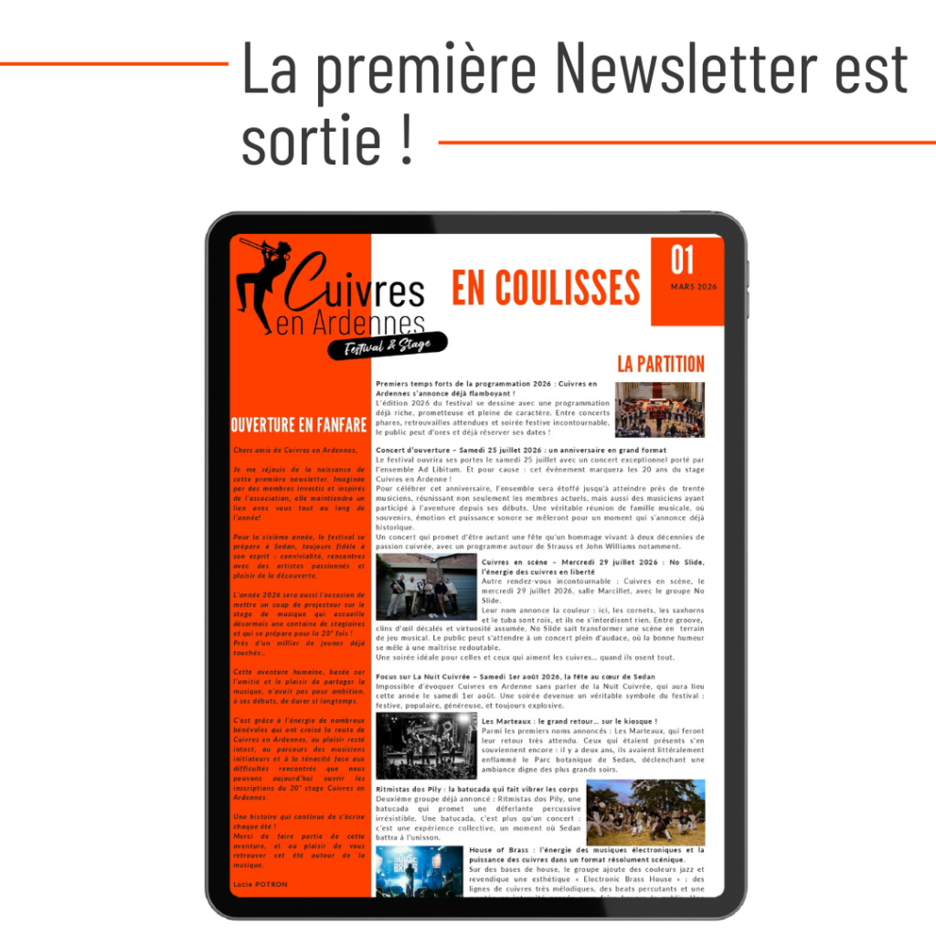 Pour ceux qui ne pourrons participer , n’hésitez pas à retrouver toute l’équipe sur les concerts du festival et à la Nuit Cuivrée 🎉 le 2 aout 2025.